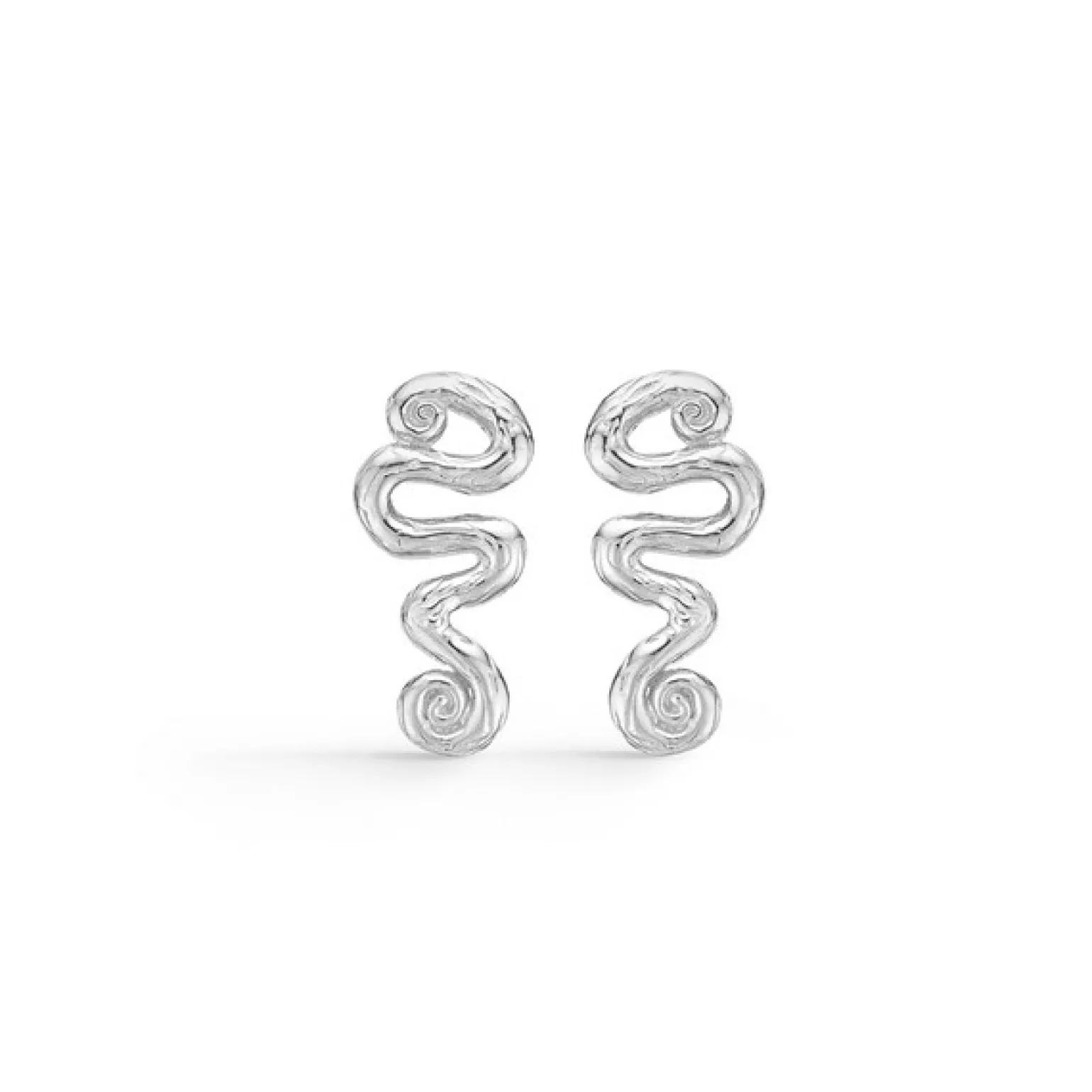 Der kleine wave Ohrstecker in silber von Studio Z schlängelt sich wie eine kleine Welle oder Schlange mit einer schönen Struktur auf der Oberfläche.