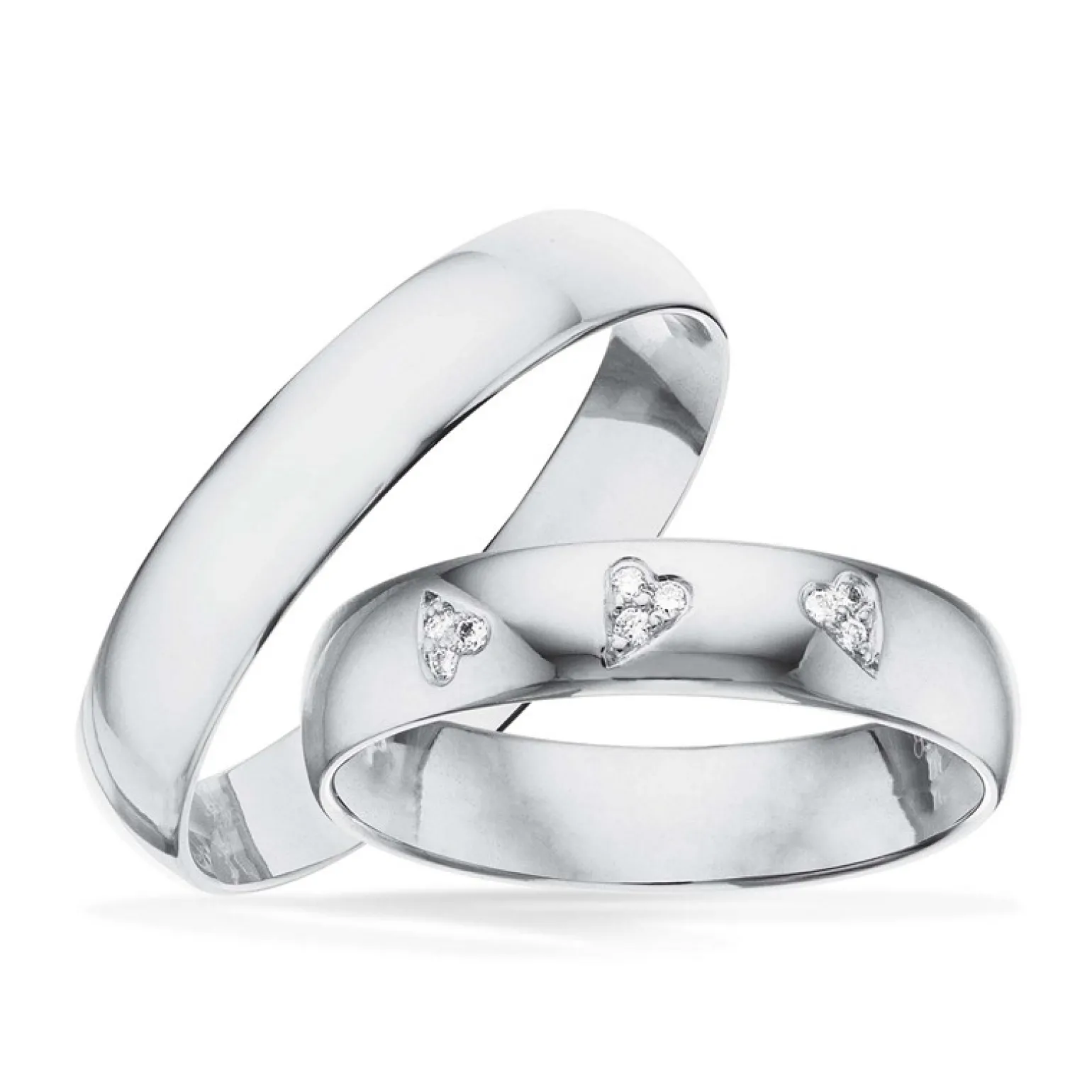 Trauringe in silber mit Diamanten in Herzen von insgesamt 0,045ct