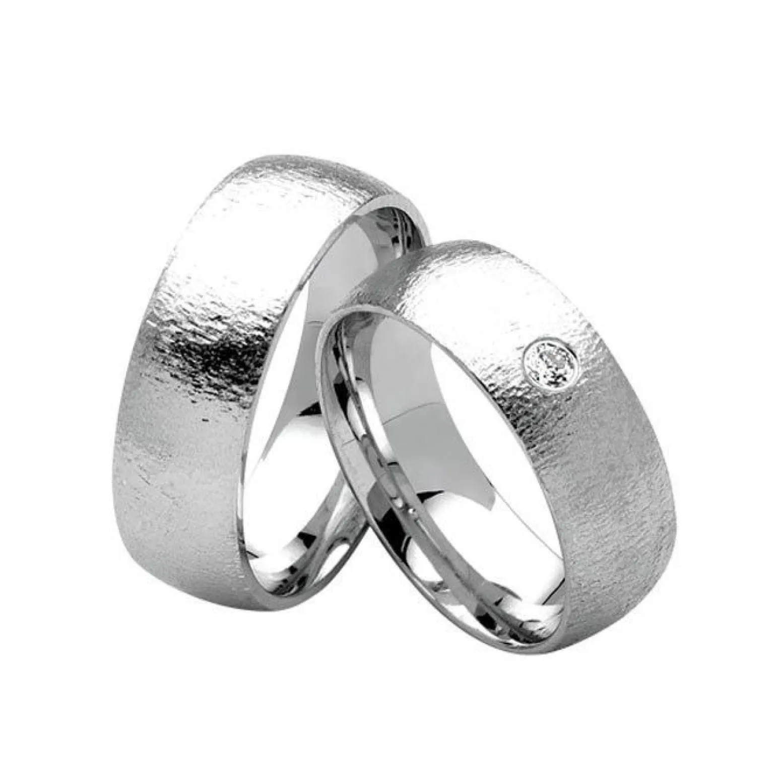 Rhodinierte Eheringe aus Silber mit 1 Brillanten im Damenring