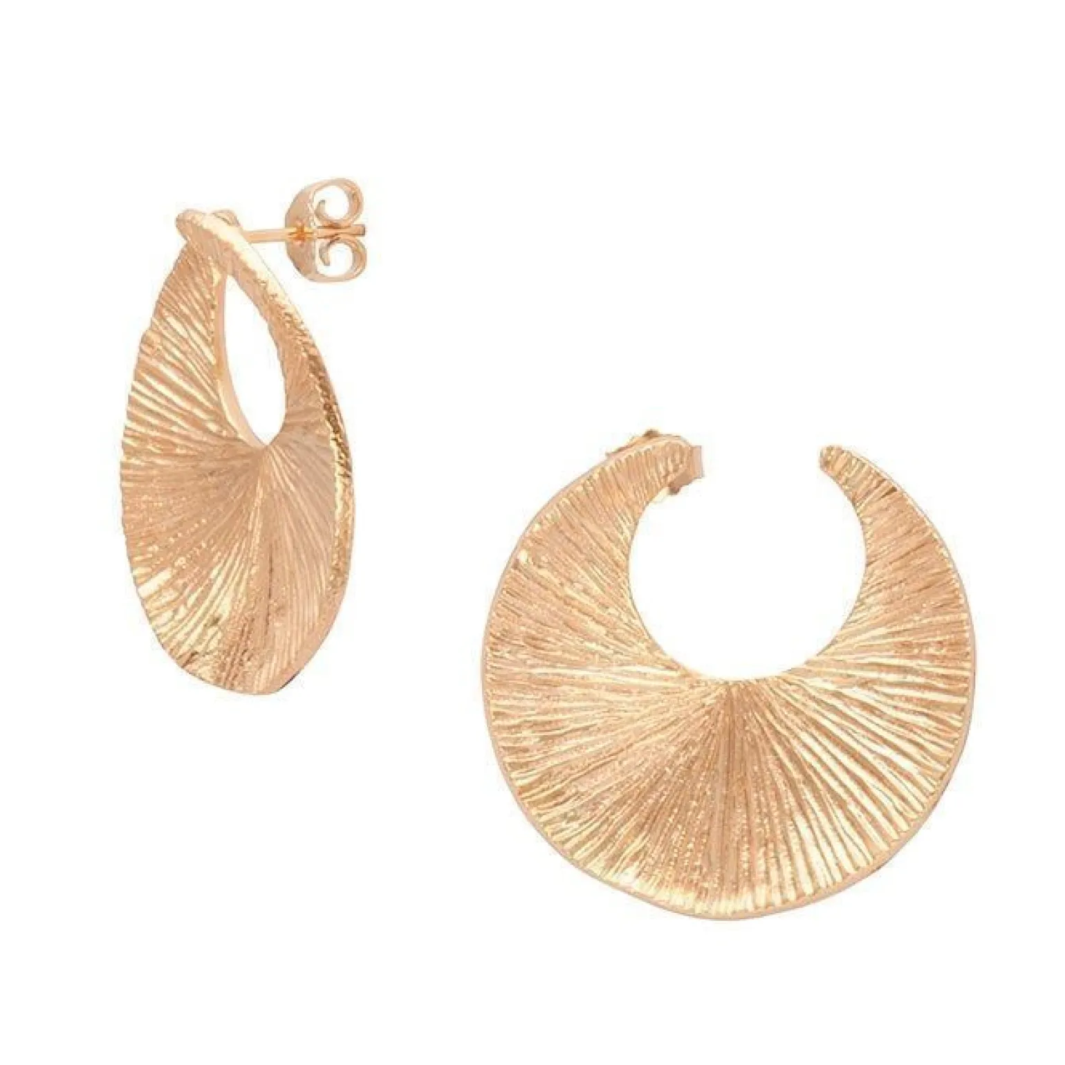 . Die leicht geriffelte Oberfläche der Ohrringe reflektiert das Licht wunderschön, und die offene Mitte verleiht den Ohrringen einen modernen grafischen Look.