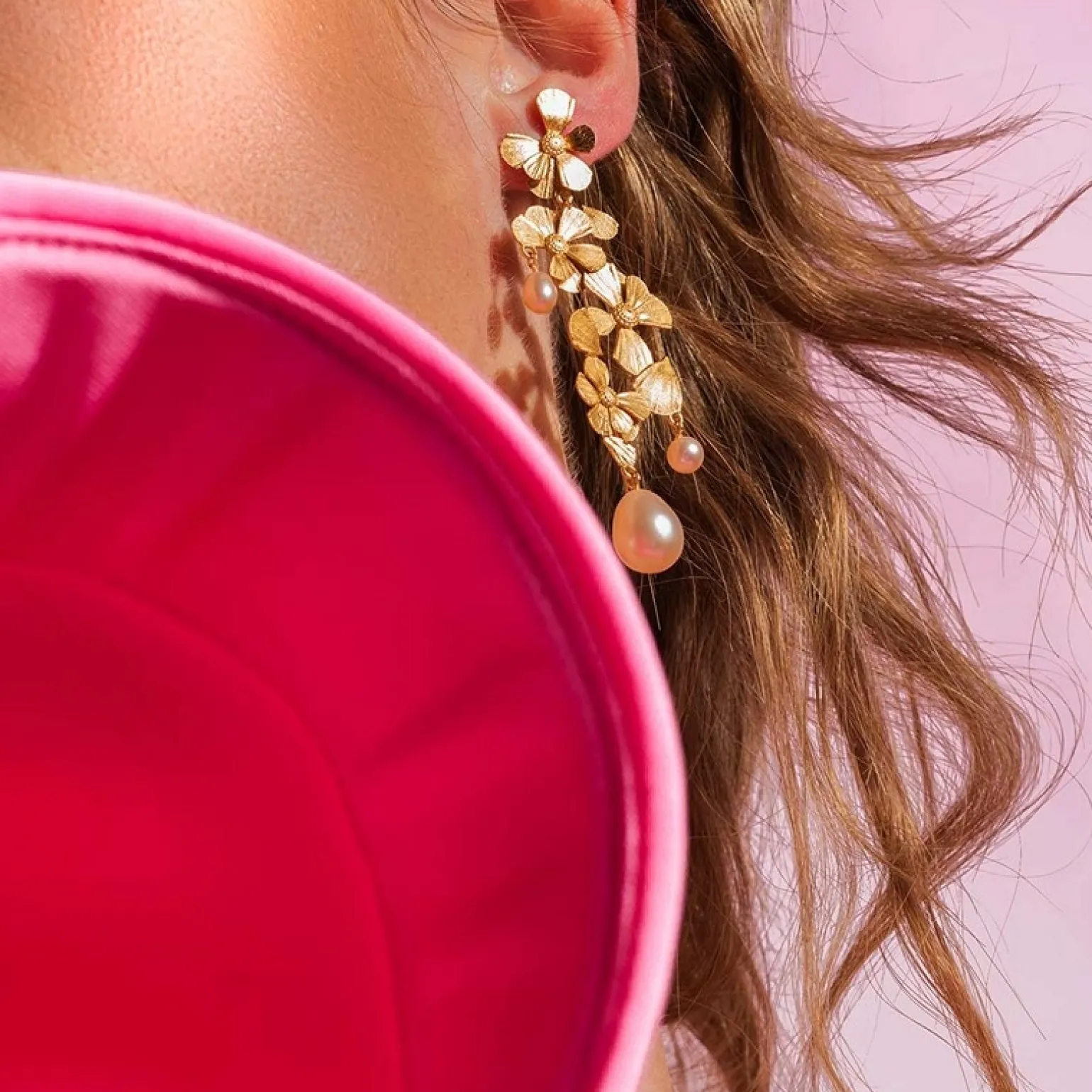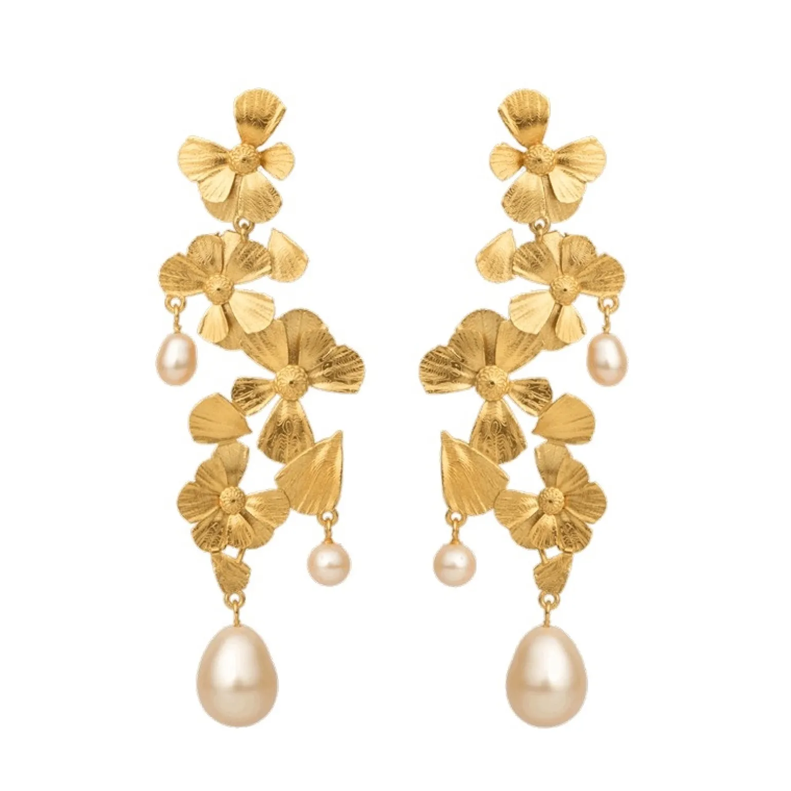Wildflower Poetry Ohrringe in vergoldete silber mit Blumen und Perlen von House of Vincent . Die Perlenohrringe sind in einem großen Statement-Design gefertigt. Obwohl es sich Poetry Ohrringen um ein großes Paar Ohrringe handelt, haben sie einen leichten und schwankenden Ausdruck.